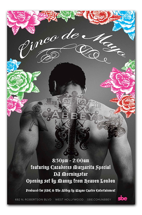 Design and production for client The Abbey restaurant and bar, Cinco de Mayo poster.