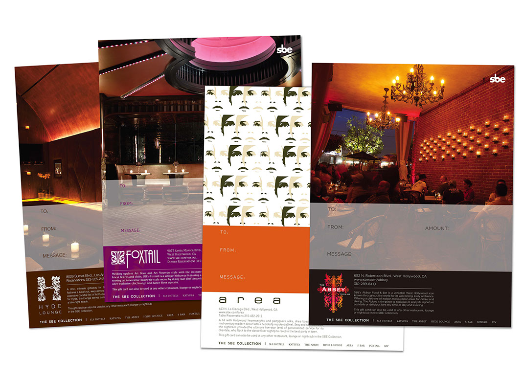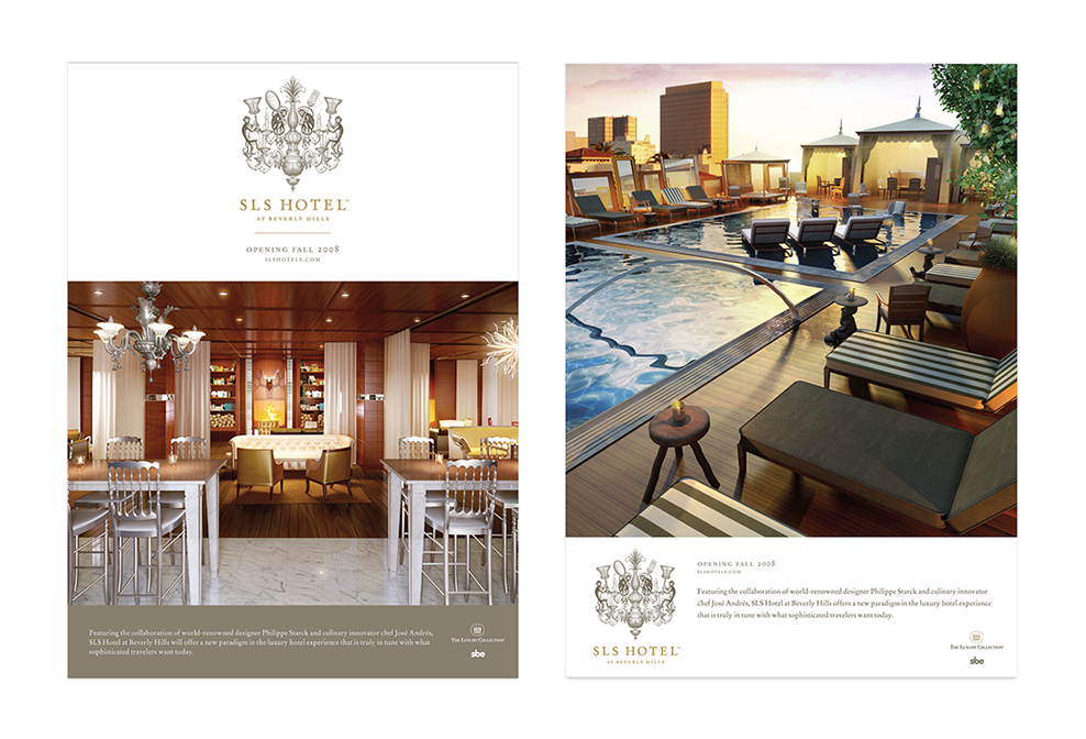 Production for KOR Hotel Group print collateral: examples for SLS Hotels.