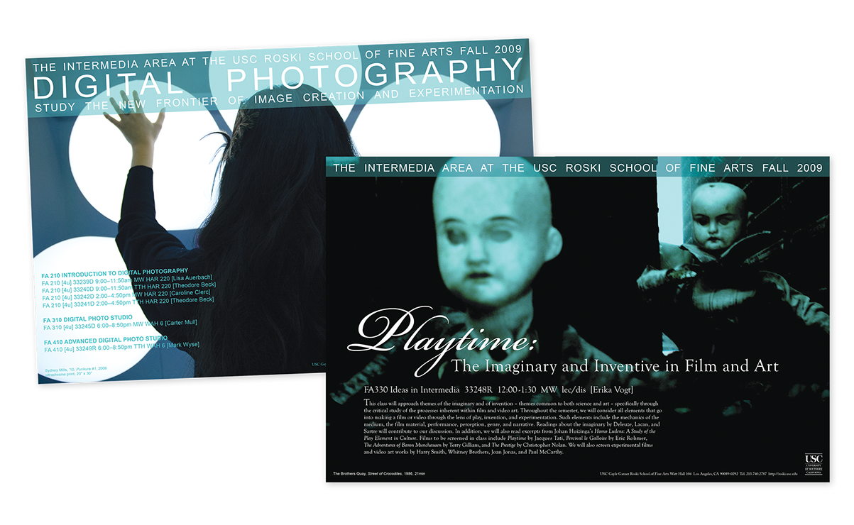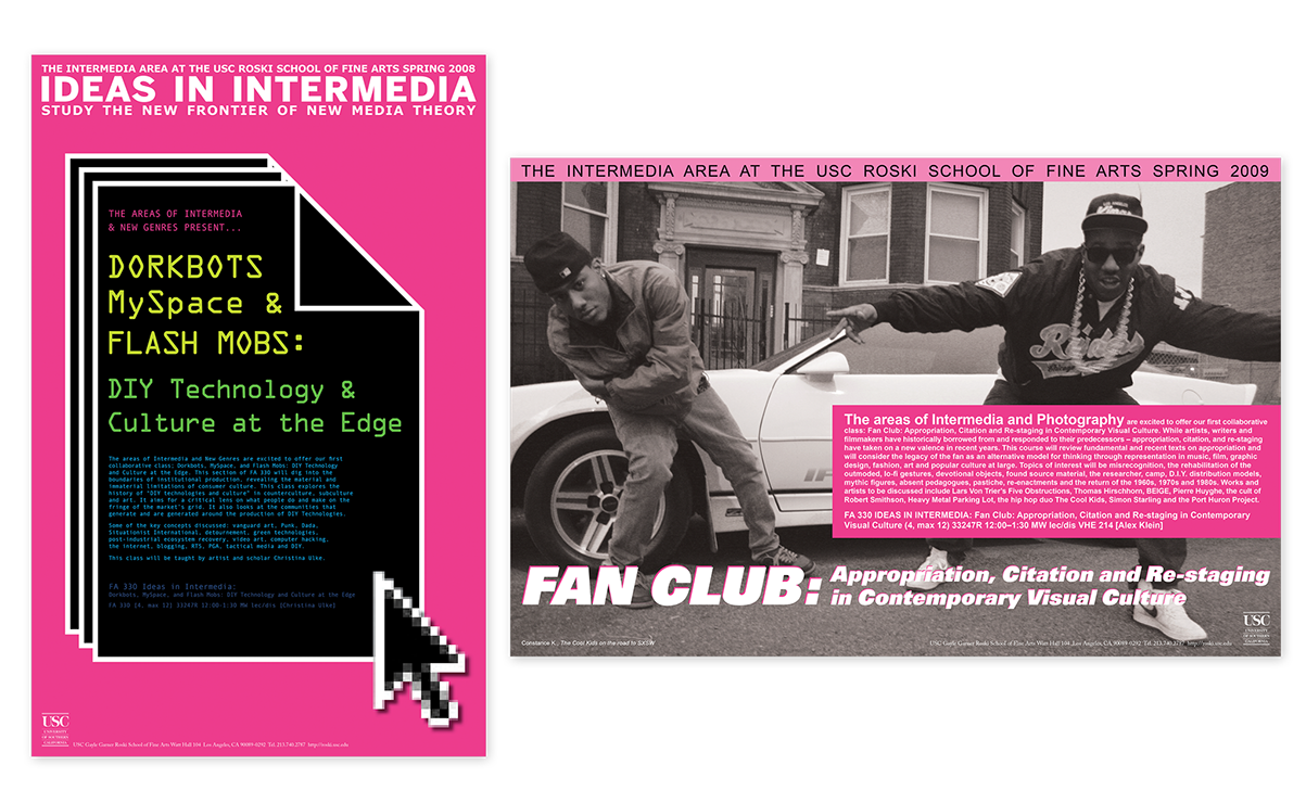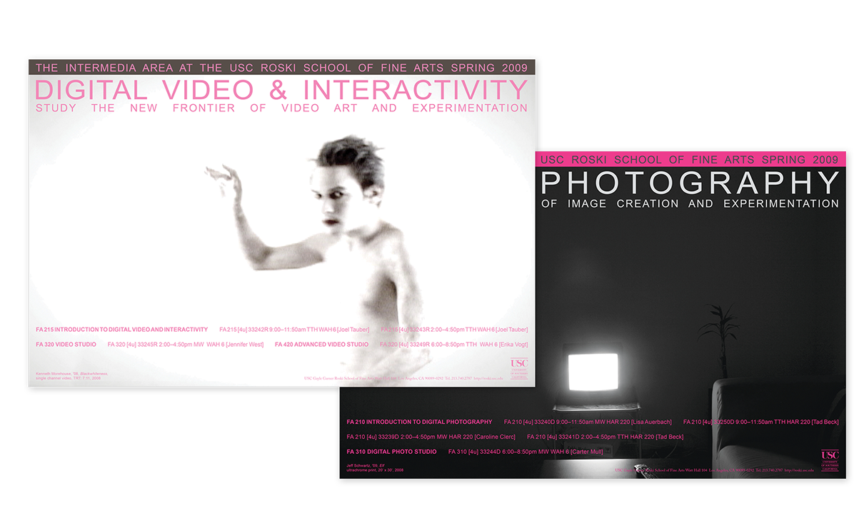 Design of promotional posters for courses at USC Roski School of Fine Arts.